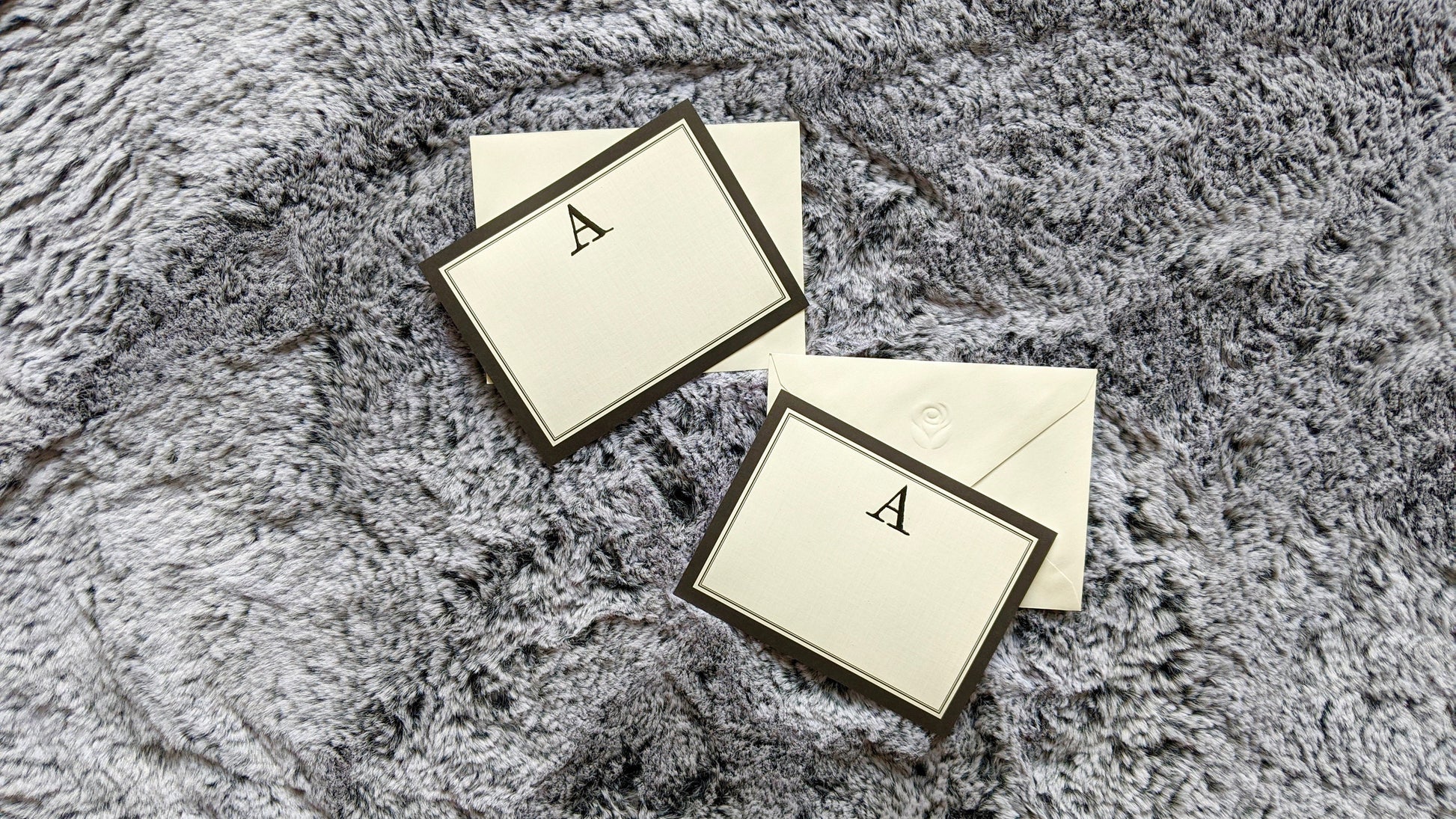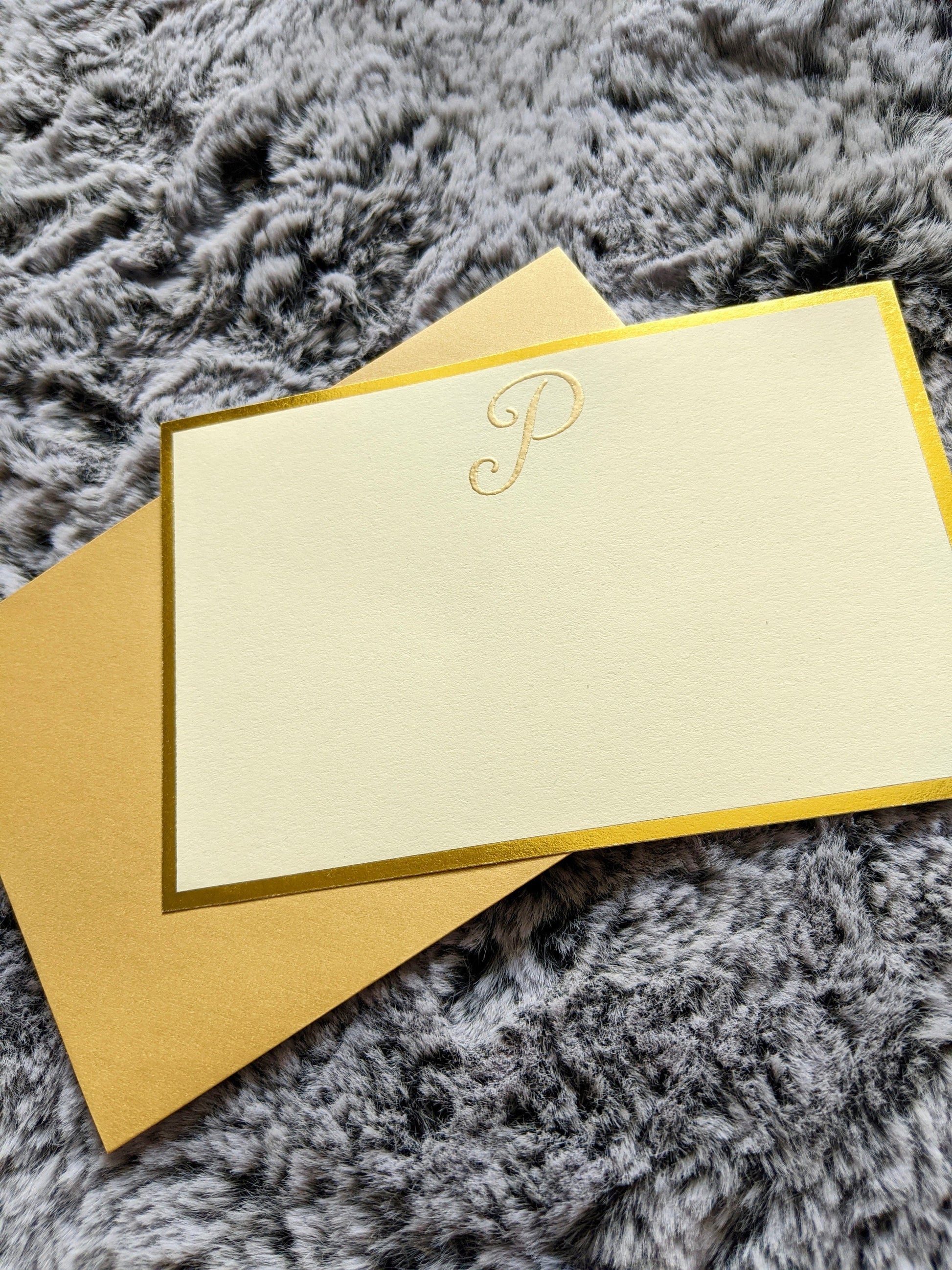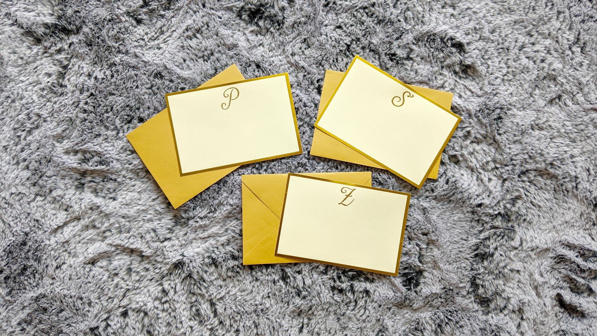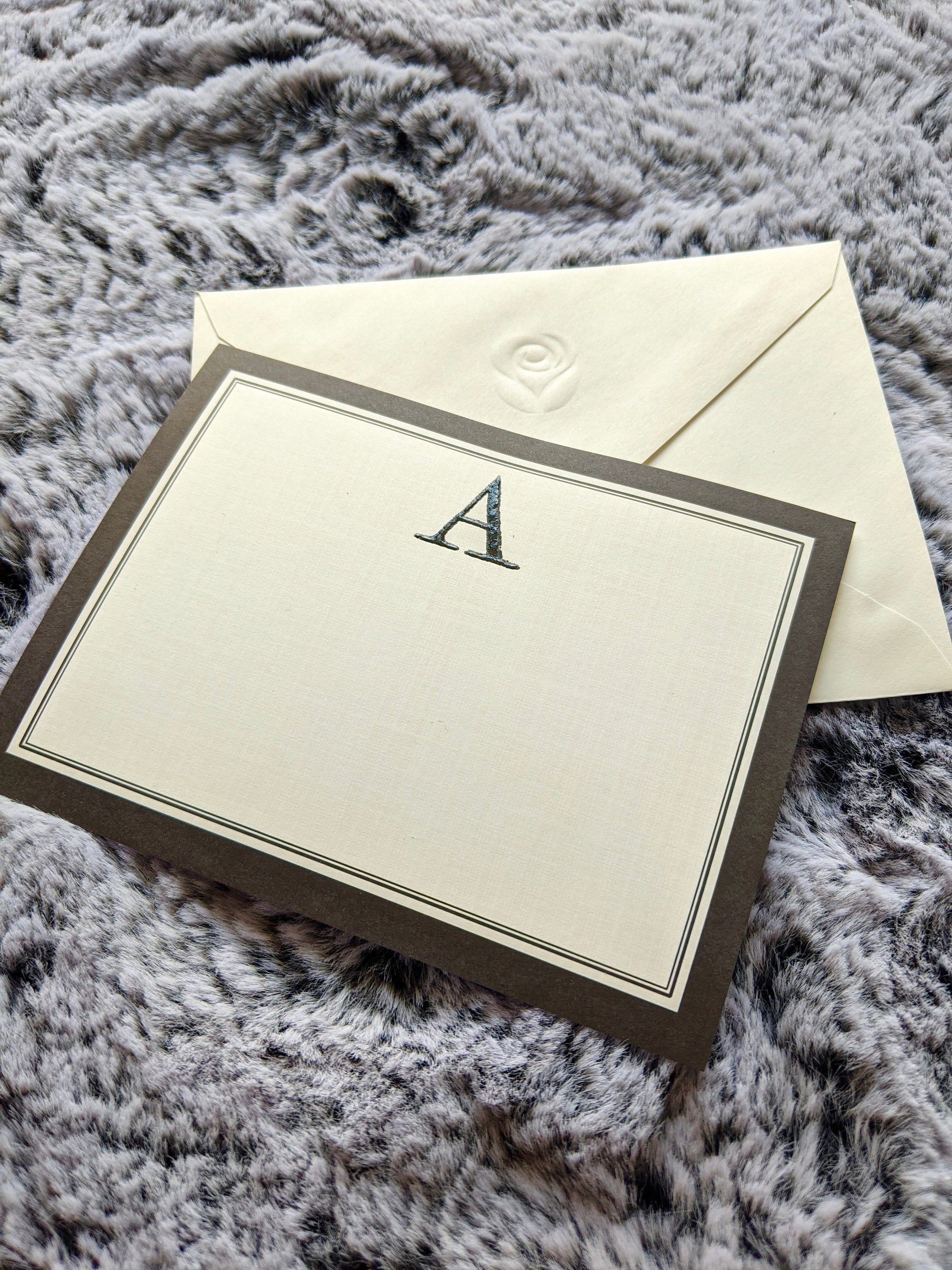 Embossed Monogrammed Blank Note Cards - Gold or Black Outline